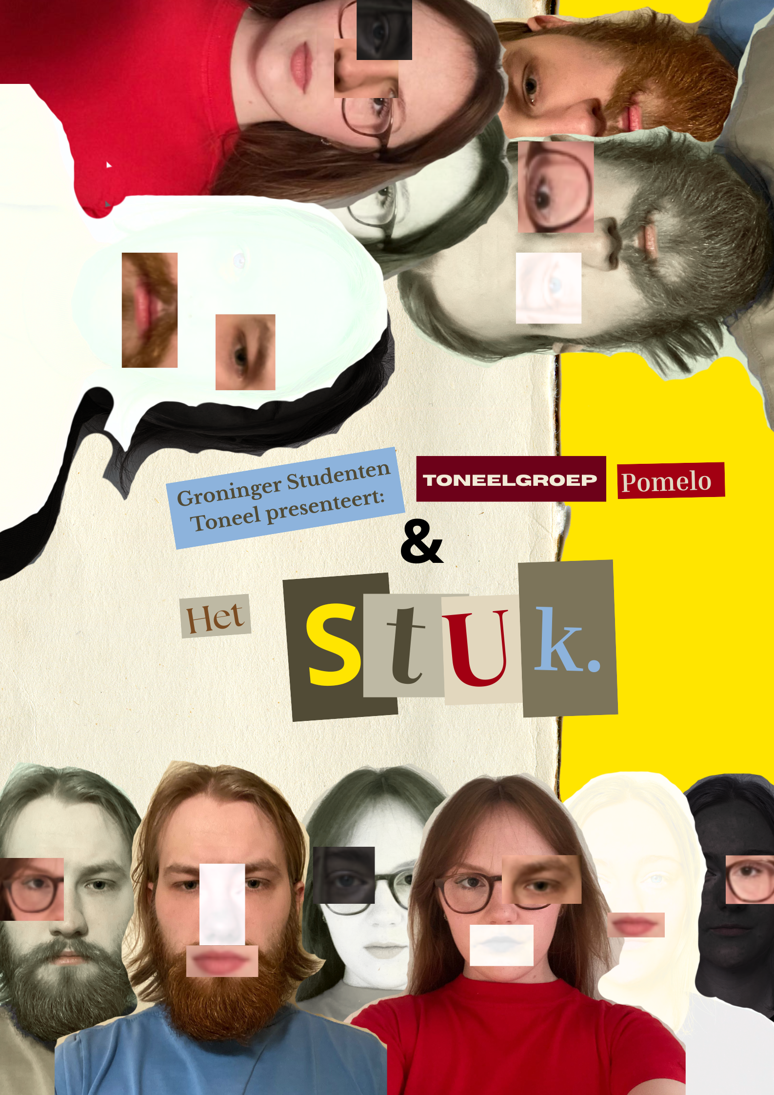 NL: Twee acteurs komen samen in een repetitieruimte. Ze hebben het over hun ontmoeting, telefoons, eten en theater. Alles om de tijd te doden… Het Stuk gaat over geduld, vriendschap en de macht van tijd, regie en het publiek. Een korte voorstelling met twee spelers, in een studentenkamer, ter ere van Stukafest. Wat overkomt ze als ze blijven wachten, en weten ze zelf wel waarop? Toneelgroep Pomelo is gevormd om een korte voorstelling te produceren voor festivals. Het doel was een leuke voorstelling maken samen met de spelers, waarin zij input konden geven en interessante thema’s konden onderzoeken. We startten ons onderzoek met het onderwerp ‘contact’. Na wat zoeken en schaven is hier een voorstelling uitgekomen over het contact tussen twee lotgenoten, die wachten op een ingrijpende hogere macht.